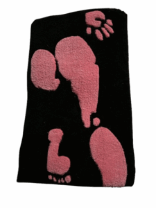 Ez az alkotás egy festményből merített inspirációt, amelynek nyomán született meg a láb- és kéznyomok játékos, mégis kifejező motívuma. Egyedi, 100% kézzel készített darab, amely önmagában is művészi értéket hordoz.
